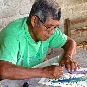 Juan Dámaso Gaspar ha dedicado más de 30 años a la creación de dibujos en papel amate. Su compromiso y sensibilidad con el arte son evidentes en cada una de sus obras. Desde niño, Juan se sintió atraído por las peleas de gallos que se realizaban en Xalitla, lo que lo llevó a empezar a dibujarlas a la edad de 10 años. Como artista autodidacta, ha ganado un gran respeto por sus diseños únicos y altamente creativos.