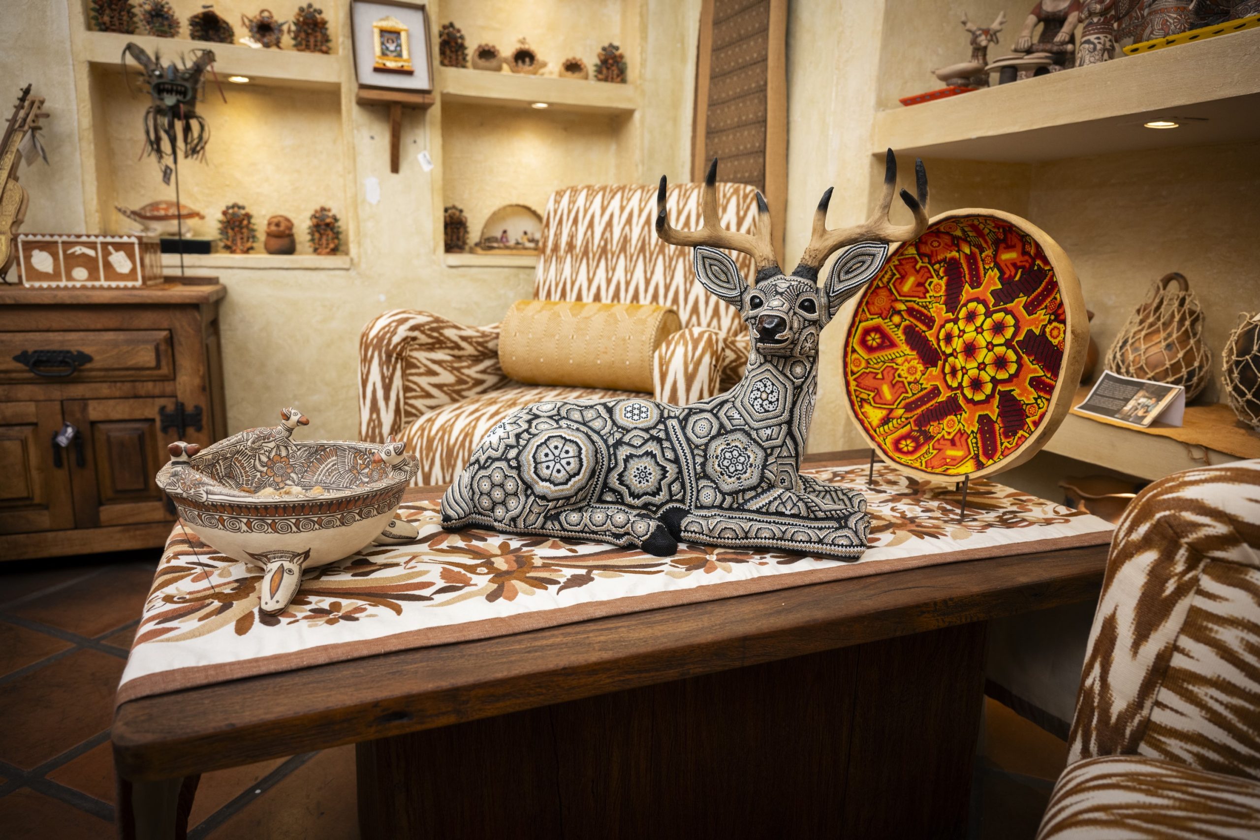 Ingrese a nuestra galería y descubra un mundo de ambientes de decoración y diseño de interiores de inspiración indígena. Nuestros espacios están diseñados para resaltar la belleza única del arte indígena mexicano, fusionando una cultura cálida y un estilo moderno. Nuestros muebles, textiles, cerámica y accesorios hechos a mano llevan el simbolismo vibrante y vívido de la cultura indígena, agregando profundidad y gracia a cualquier ambiente.